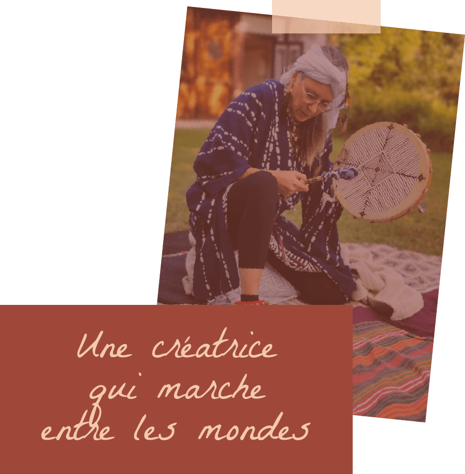 Celle d’une femme multiple, artiste et messagère, qui marche entre les mondes pour révéler l’invisible.
