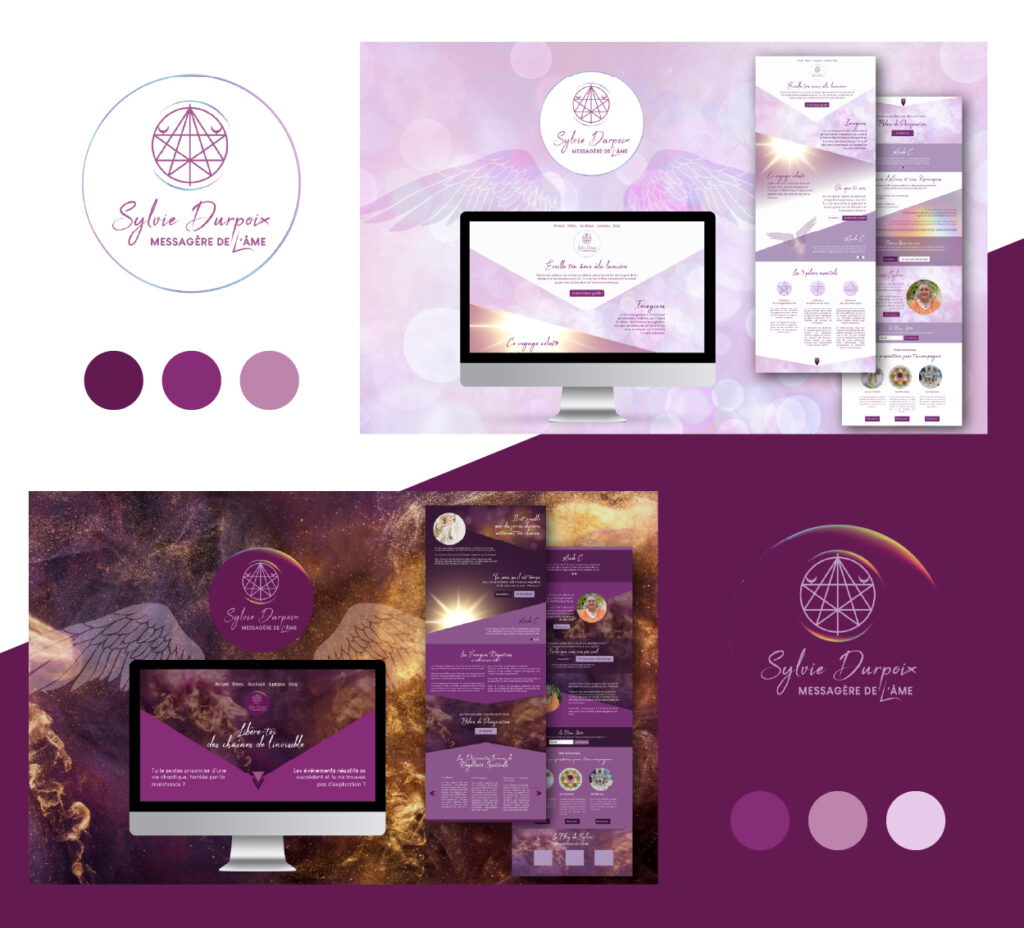 Le challenge lors de notre collaboration était de créer deux entrées distinctes et séparées : l’une qui parle à celles/ceux qui sentent quelques freins, à se reconnecter à leur chemin de vie authentique, grâce au portail «lumière» et l’autre qui concerne les personnes engluées par des contrats d’âmes plus lourds, avec le portail «ombre».
